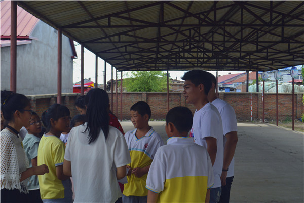 首先队员们就活动内容及互动方式进行了讨论准备,随后和同学们来到操场开展课外活动?;疃问蕉嘀侄嘌?,队员们通过猫捉老鼠游戏和踢足球等多种方式和同学们进行互动并深入了解了他们的心理状态。通过了解发现同学们大多数都由于自卑而不太开朗,队员们通过课外互动活动的方式和他们进行交流,使得他们变得更为开朗积极,乐观向上。