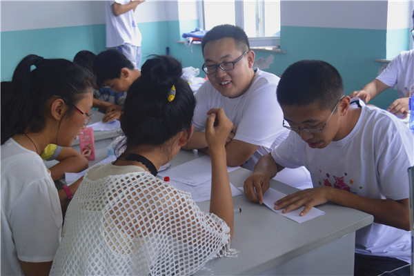 7月15日上午8时整,航建学院彩虹服务队在七棵树镇中心学校开展了课外活动,三下乡服务队全体成员参与了活动,王玉杨作为本次活动的主持人。
