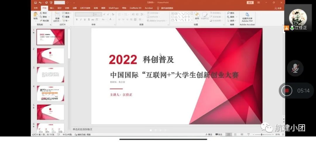 本次的科创普及主要讲解的是“互联网+”大学生创新创业大赛科普,讲解人首先从大赛概况说起,先介绍“互联网+”大学生创新创业大赛,举办此次大赛的意义和大赛总体安排的变化。其次介绍大赛选题来源,主要是从学生自发、科创融合、教资融合和学科融合四个方面来讲解,同时通过举出“艾云农仓-藜麦科技脱贫领导者”、“基于空间定位及超声图像引导的肌肉穿刺仪”等具体实例来介绍四个方面的特点。讲解员还进行题目分享 ,主要是讲解海洋智能“中”端项目和奥松编程吧项目。再次讲解该如何去写项目计划书,介绍项目计划书的基本组成部分,讲解该如何撰写题目和选题 -- 是通过想象出来的还是根据用户痛点设计出来的,解决方案是什么,具体介绍解决方法、创作方式、潜力与效益,同时也要进行市场分析,证明从事的领域确实存在市场需求和市场规模。最后说明该如何组建团队才有优势,在路演方面上,讲解员也分享很多技巧。