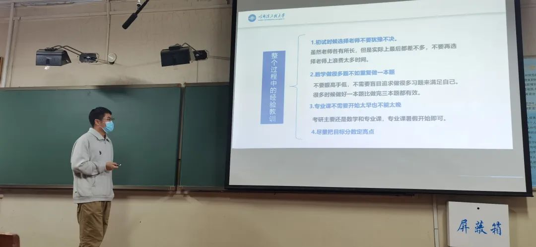 2018级考研优秀学生代表结合自身考研经历,对学校和专业的选择、复习进度安排、课程复习方法、复试技巧等方面给出了诚恳建议。