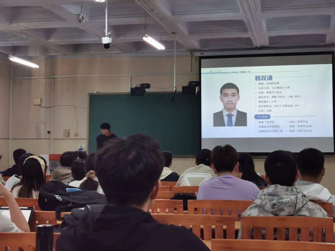 为更好帮助2019级本科生了解以往研究生推免政策、认清考研和就业形势,有针对性地制定备考复习计划,4月28日-5月10日,航建学院举办2019级本科生就业升学分享会。学院党委副书记张德伟、学工办主任梁艳艳及10余名2018级优秀本科生代表受邀参加会议,他们先后为2019级4个专业、9个班级、329名在校学生进行“对标差距、找准定位、一战成硕”为主题的就业升学系列分享会。会议由2019级本科生辅导员褚悦主持。