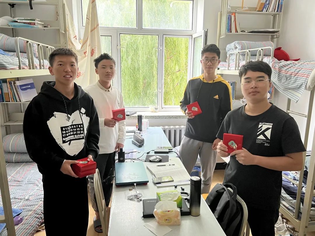 月饼,是花好月圆之时最好的礼物。2022级新生纷纷合影留念,发布朋友圈分享愉快的心情。