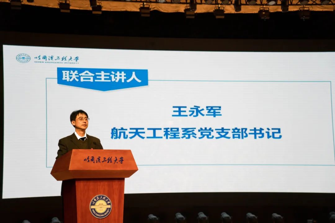 航天工程系党支部书记王永军,讲述的是中国大飞机“领证”的故事。他通过国产商用大飞机C919“领证”道路的讲述,分析了国产大飞机的“卡脖子”问题,告诉同学们:“只有认识到差距,才有可能弥补差距!”同时他建议新生们把我国35项卡脖子技术的图片贴到自己床头案边,化为警钟时刻提醒自己破解卡脖子技术,是工程学子的责任,是航建学子的责任,是'我'的责任!他寄语航建学子:“想要做到真正的‘天长地久’,需要我们一代又一代航空航天人不懈的努力!”